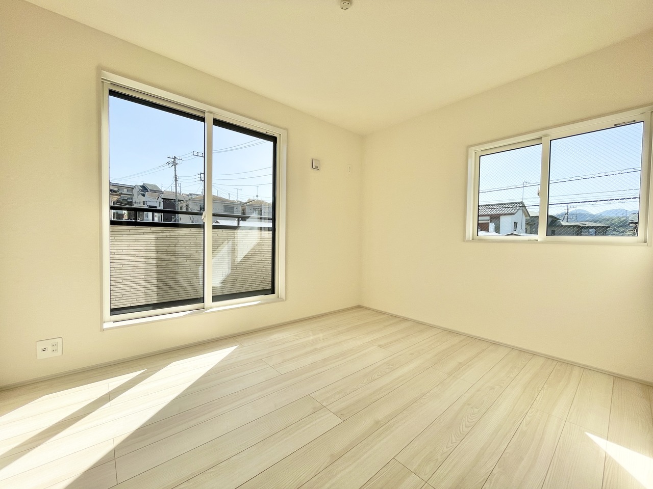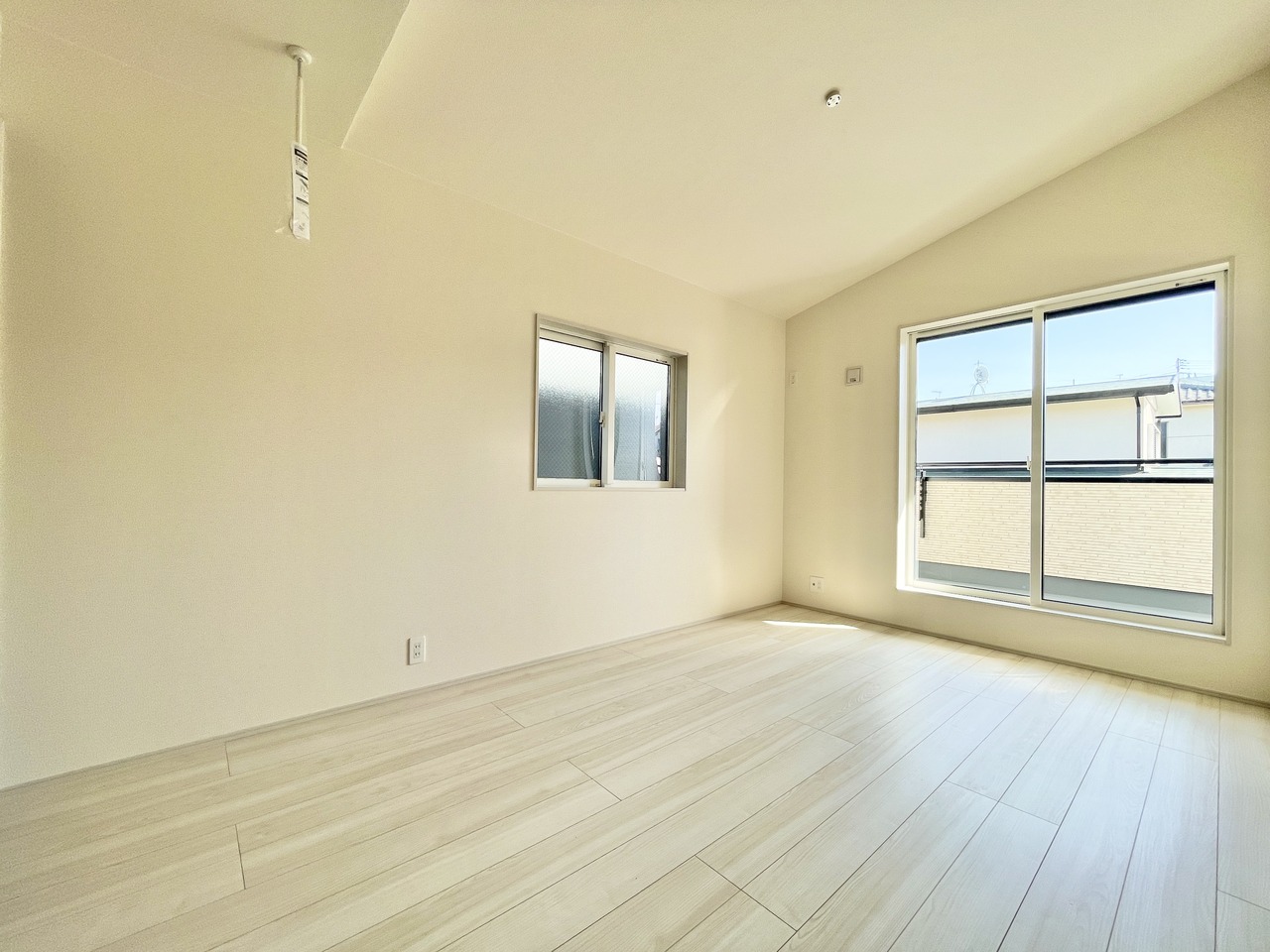 大きな窓から自然光が差し込む、明るく開放的な洋室。家具の配置がしやすいシンプルな間取りで、寝室や子ども部屋、ワークスペースなど多用途にお使いいただけます。