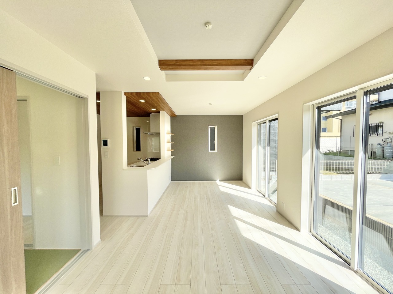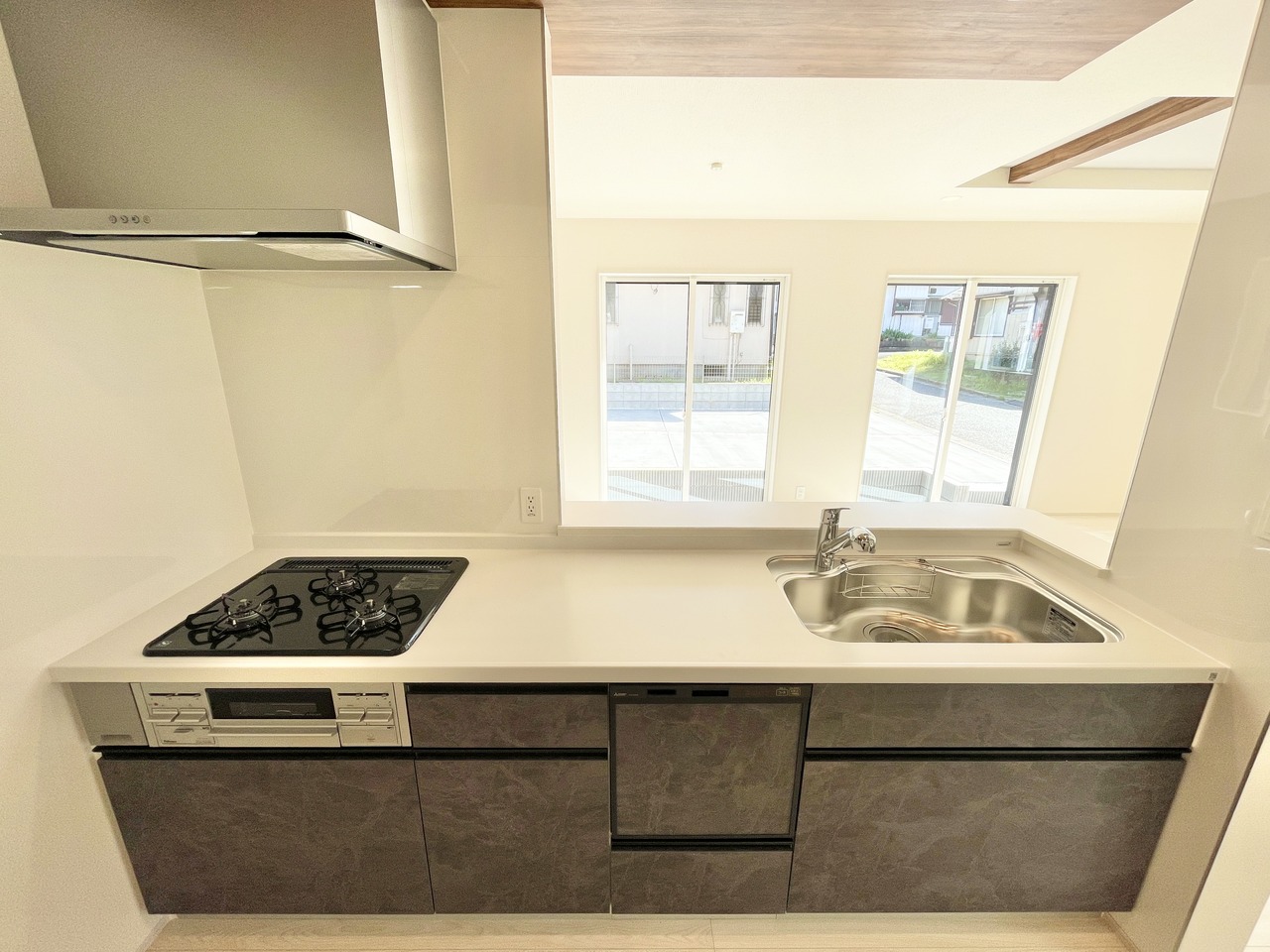 忙しい毎日を支えてくれる、新築ならではのピカピカのシステムキッチン。広々カウンターで料理も配膳もスムーズ、収納もたっぷりで片付けラクラク。家族とおしゃべりしながら作れる“ちょうどいい距離感”も魅力です。毎日のごはん作りが、ちょっと楽しみになるキッチンです。