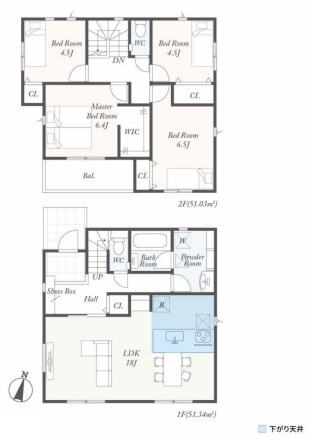 | 間取 | 4LDK (LDK18帖、洋室6.5帖、洋室6.4帖、洋室4.5帖、洋室4.5帖) | ||