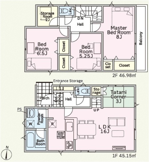 | 間取 | 3LDK+タタミコーナー3帖+ストレージルーム2帖 (LDK16帖、洋室8帖、洋室6.5帖、洋室5.25帖) | ||