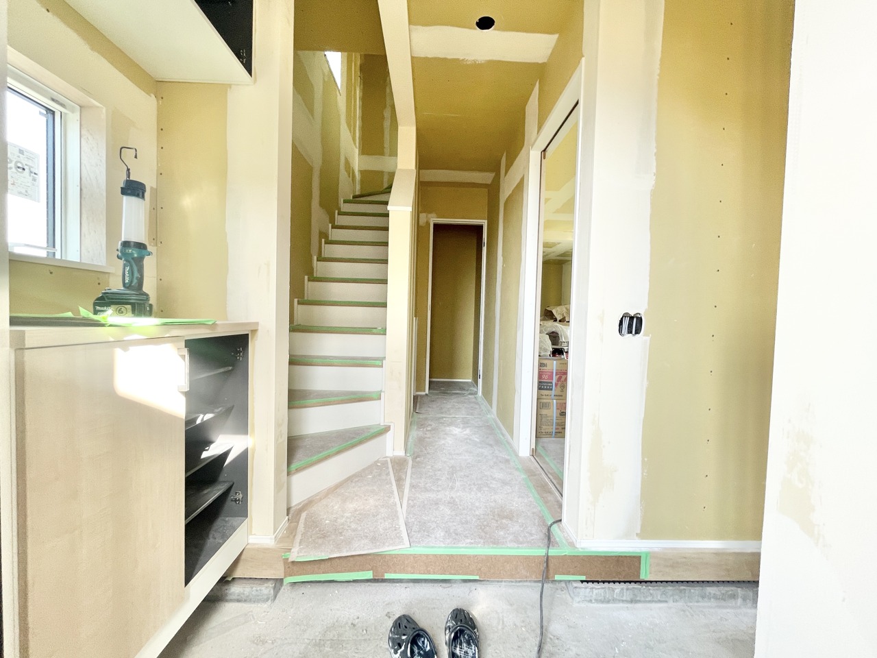 玄関入って右手側にはゆとりあるシューズインクロークがある嬉しい設計。開放的な玄関です。