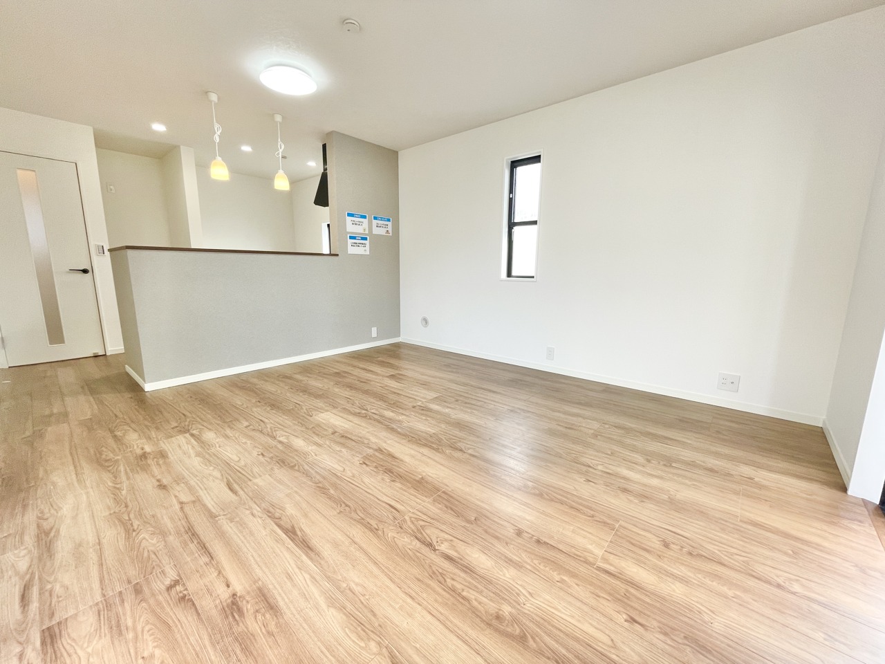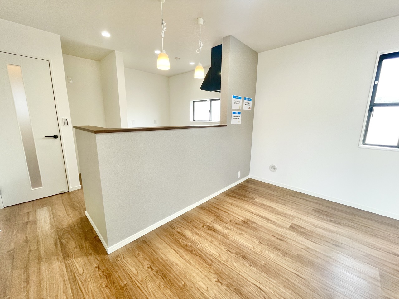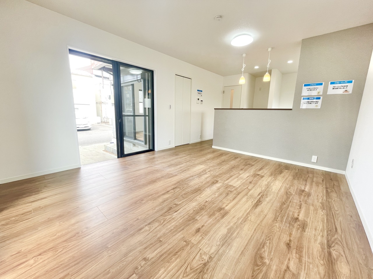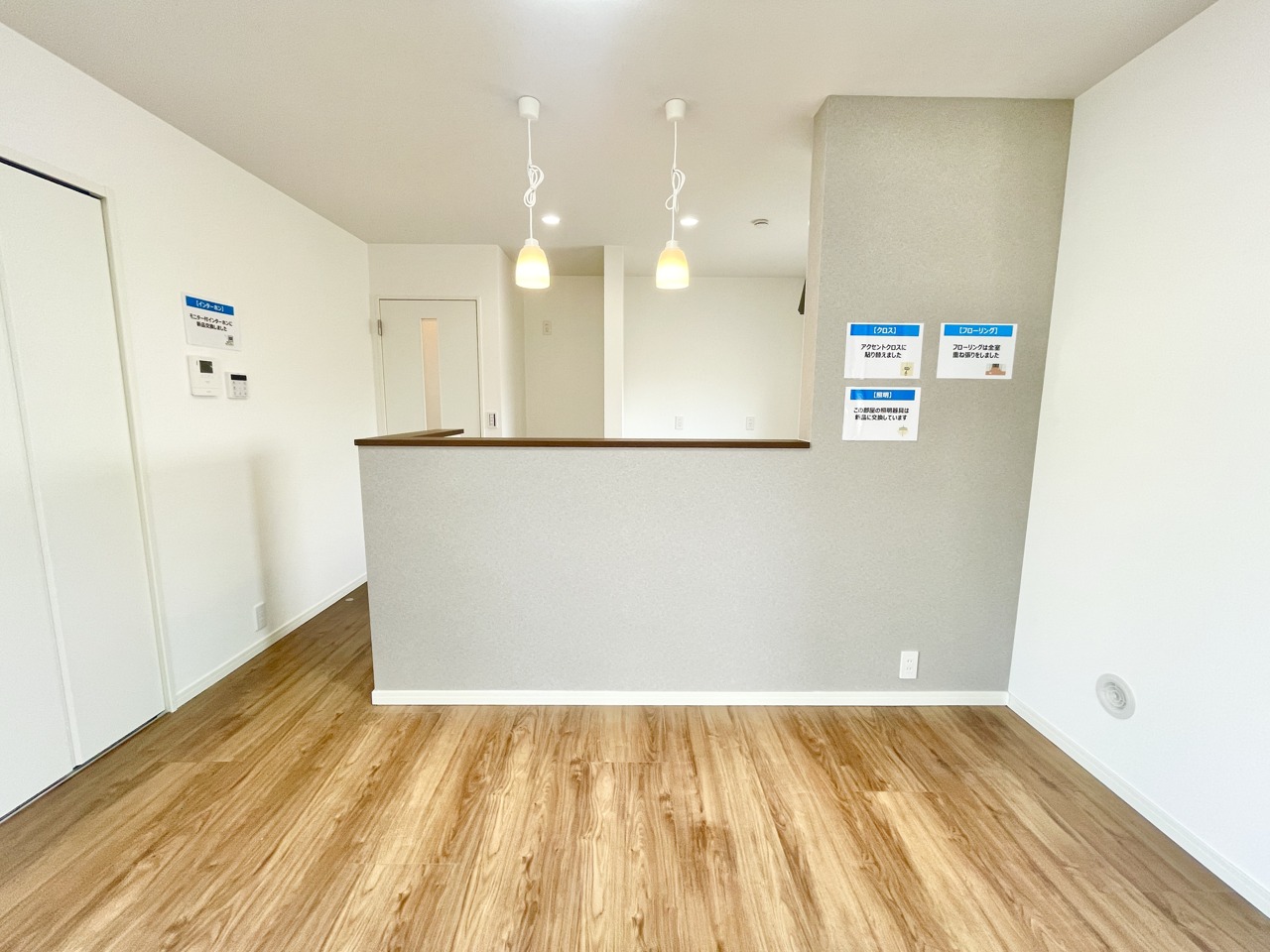 キッチンのアクセントクロスがLDK全体を引き締めます。フローリングも張替済みで新築気分で新たな生活を