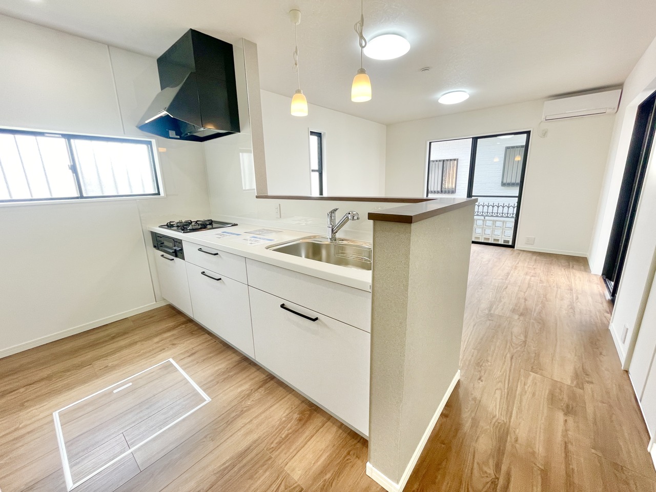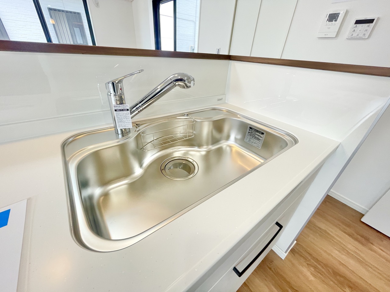 対面式システムキッチンはゆとりある空間。水回りは全て新規取り換え済みでまるで新築のような仕上げに。