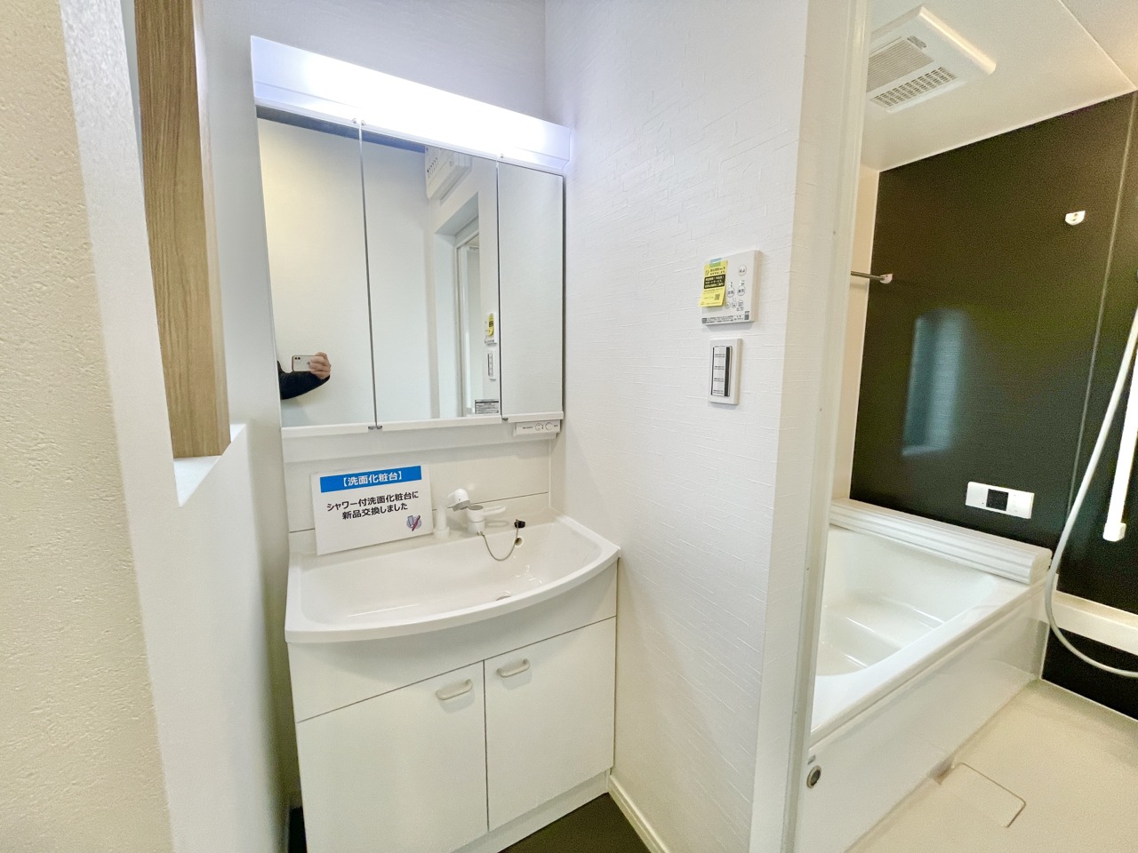洗面化粧台スペース。新規取り換え済み。