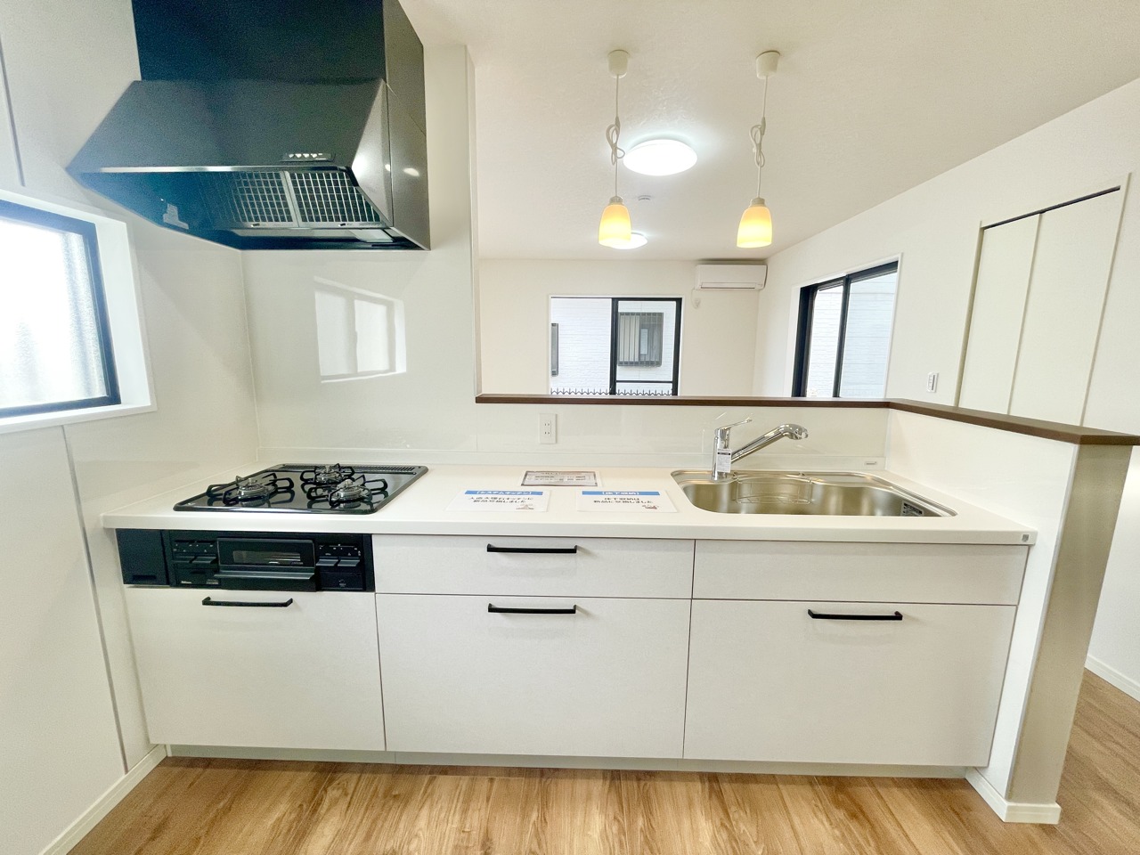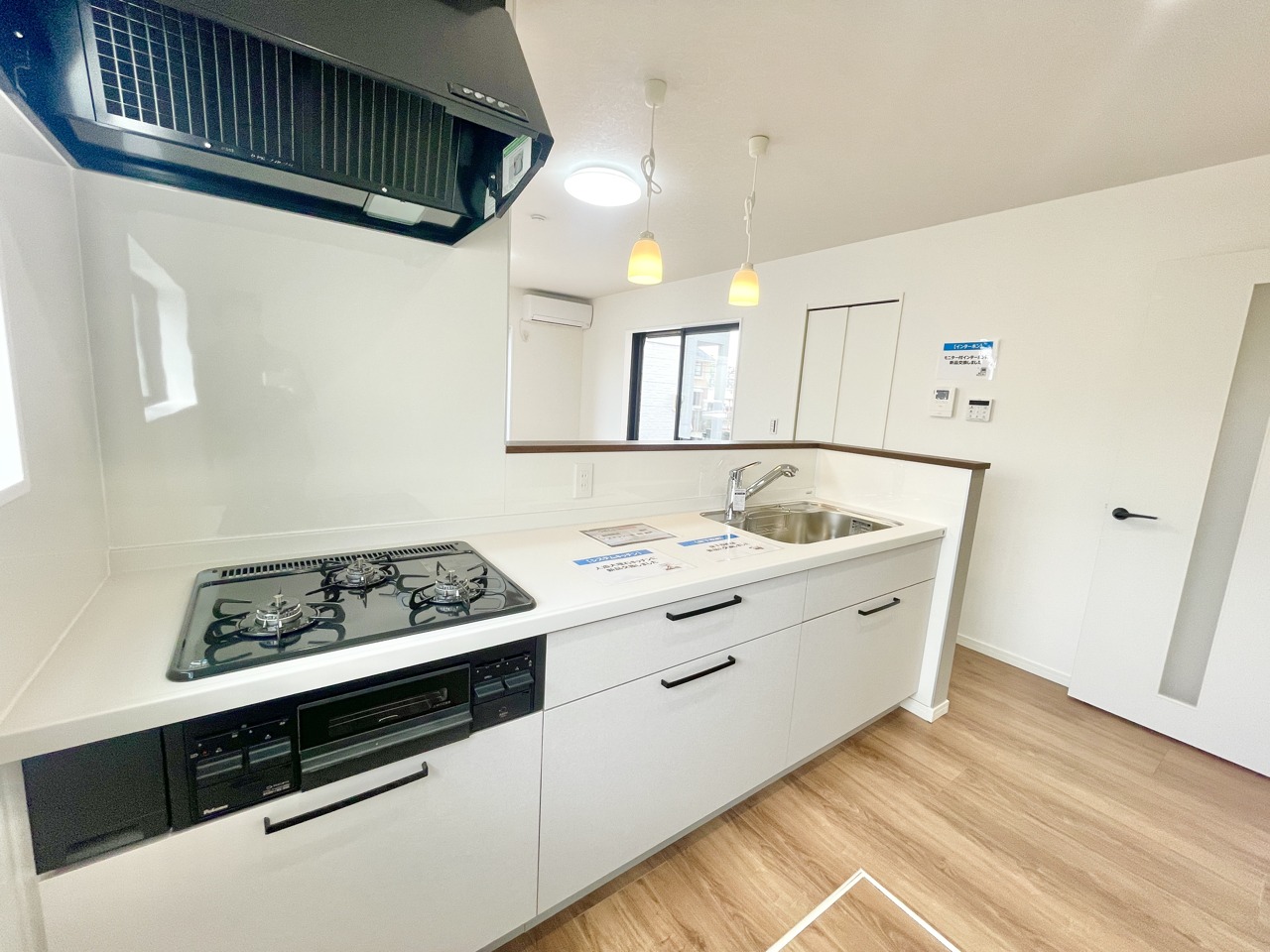 対面式システムキッチン。水回りは全て新規取り換え済みでまるで新築のような仕上げに。