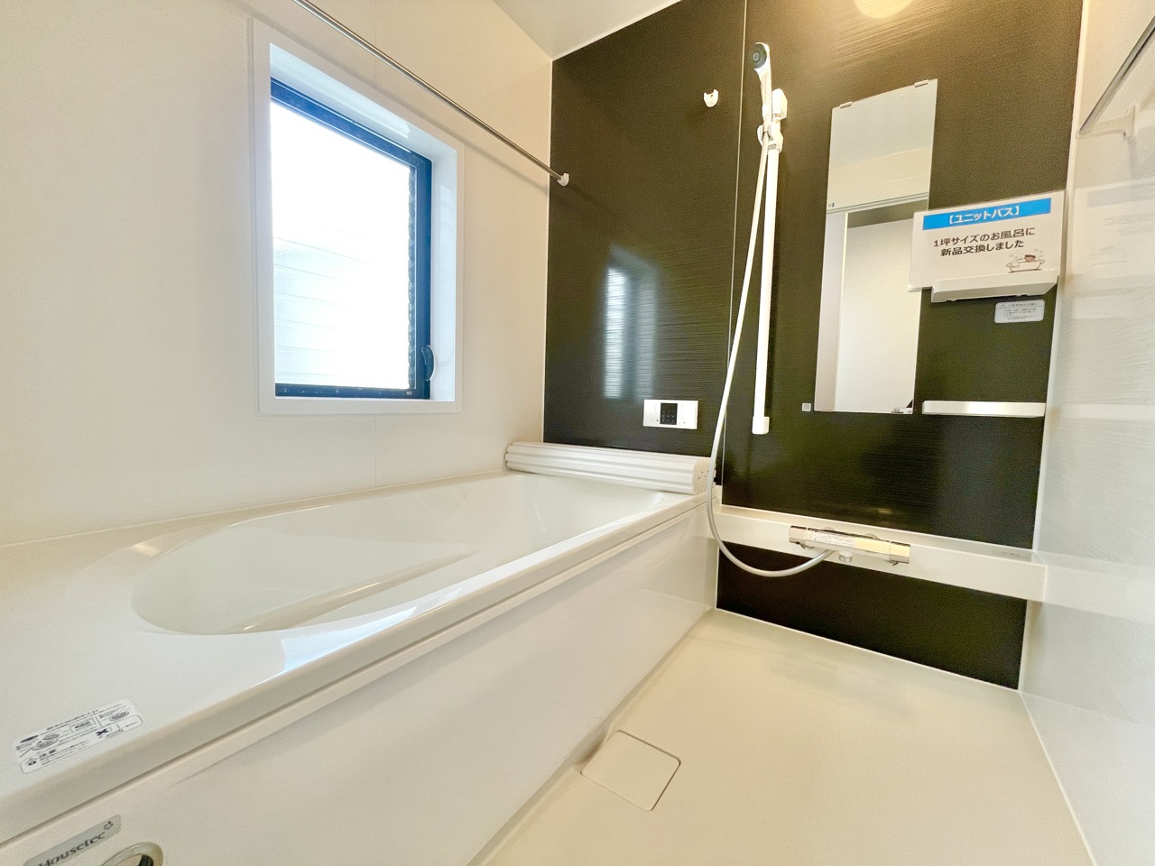 窓付きの浴室暖房換気乾燥機付きバスルーム。1坪以上の広々とした空間で快適なバスタイムを。