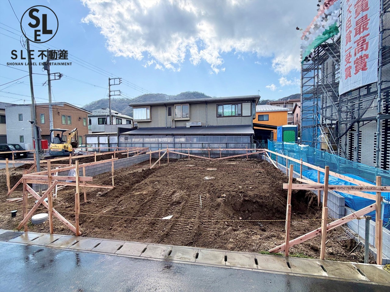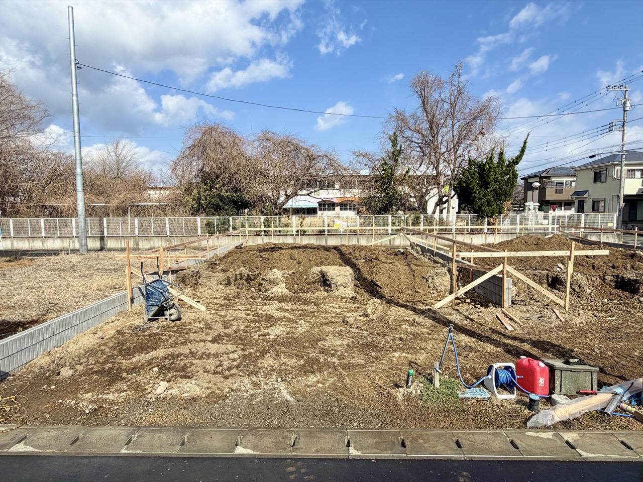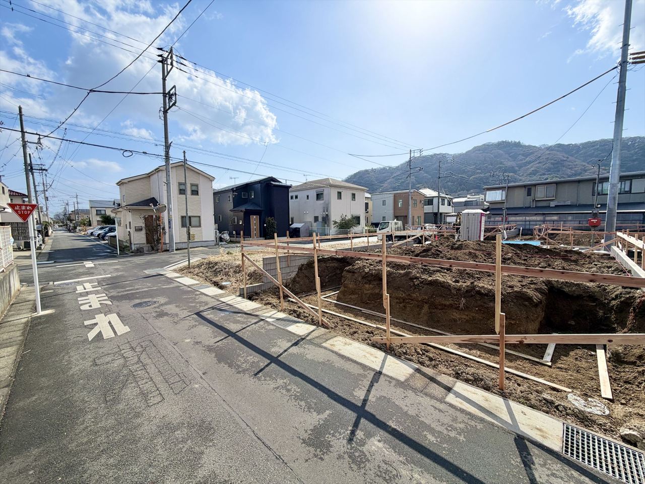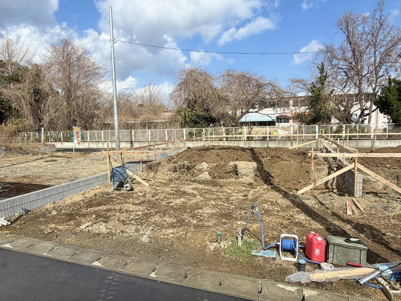 2号棟 青空に映える建築中の住まいは、耐震+制震の安心仕様。落ち着いた住宅街で、暮らしやすさと静けさを両立できる環境です。これから形になる新しいお家で、家族の“ちょうどいい毎日”を育んでみませんか?完成が楽しみになる一邸です。