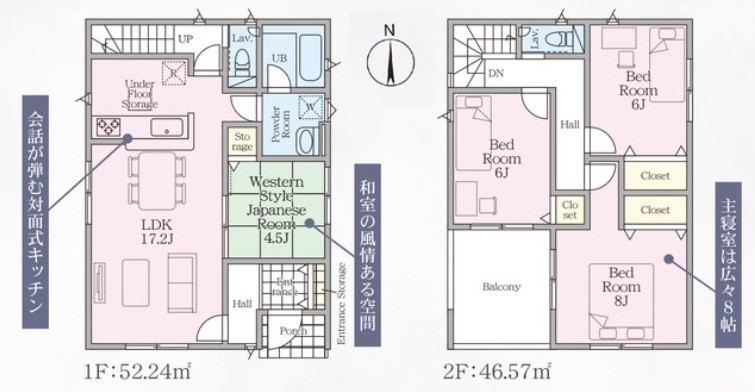 1号棟 ファミリータイプの4LDK ■耐震 + 制震の家、QUIE(クワイエ) 当社の2階建分譲住宅は、建築基準法で定められた壁量の1.5倍に達する十分な性能を誇っています。さらにその耐久性を上げるために、共同開発による制震装置(SAFE365)を完成。