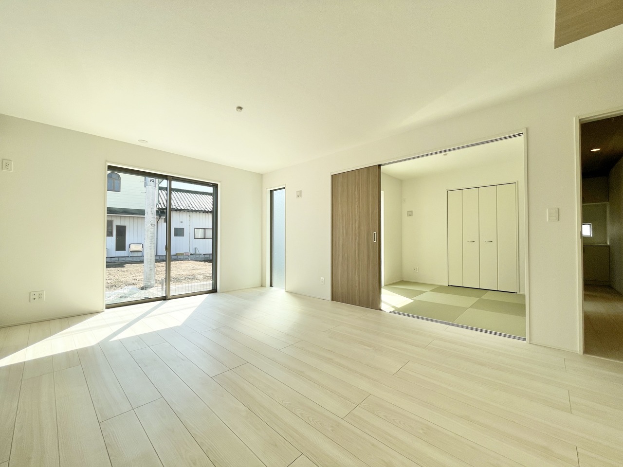 2号棟 来客時や家族が集まる場面では、大空間として使用でき、暮らし方に合わせた使い分けが可能です。