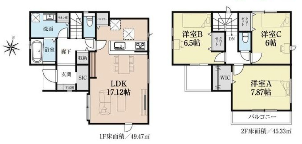 | 土地面積 | 113.47m² ~ 115.1m² | ||