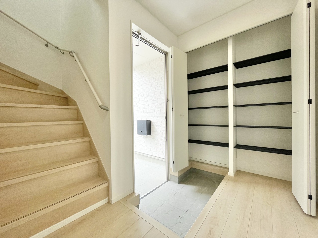 玄関には靴の収納はもちろん、スポーツ用品やペットの散歩グッズも収納することが出来そうです。