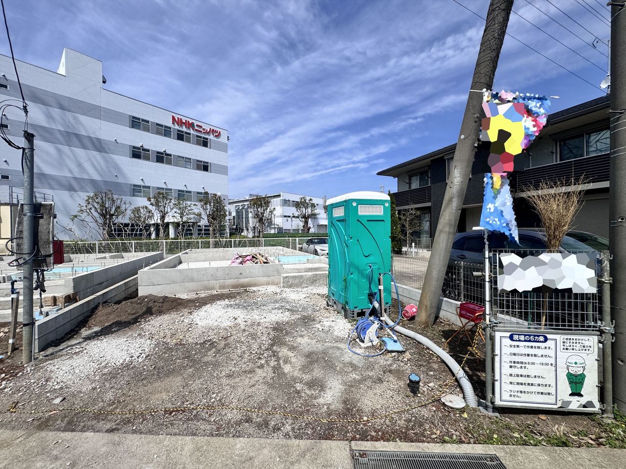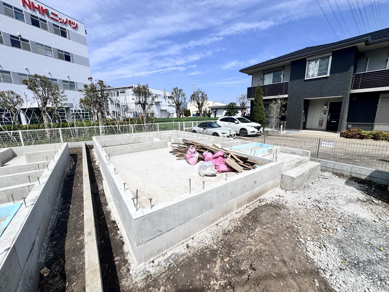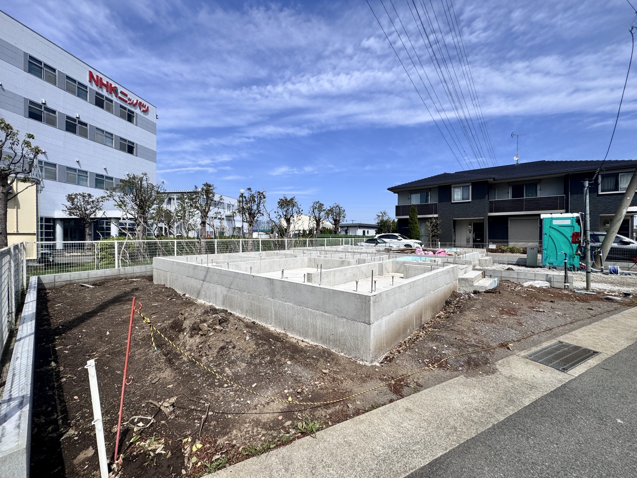 2号棟 これから基礎工事が進み、少しずつ“わが家”の形が見えてくるワクワクの現地。完成後の暮らしを想像しながら、陽当たりや周辺環境もチェックできます。今なら工事の進み具合も確認でき、家づくりの過程を楽しめる、完成が待ち遠しい新築分譲地です。