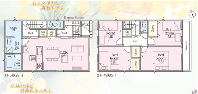 | 建物面積 | 90.72m² ~ 95.58m² 実測 | ||