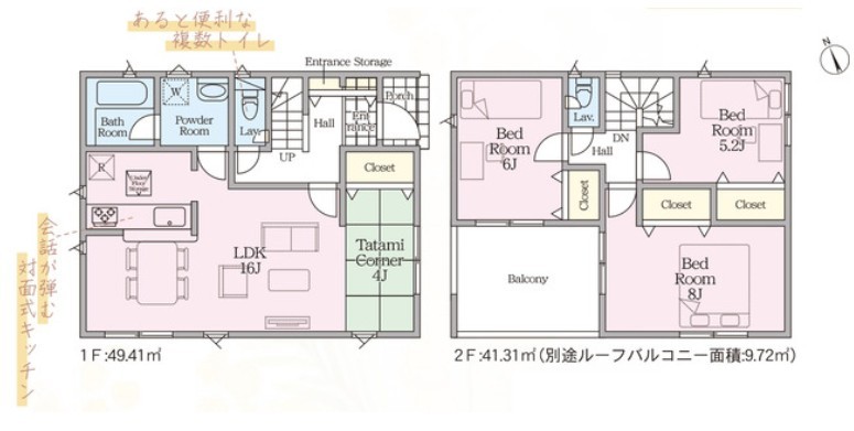 2号棟 3LDK+タタミコーナー4帖のゆとりある間取り。