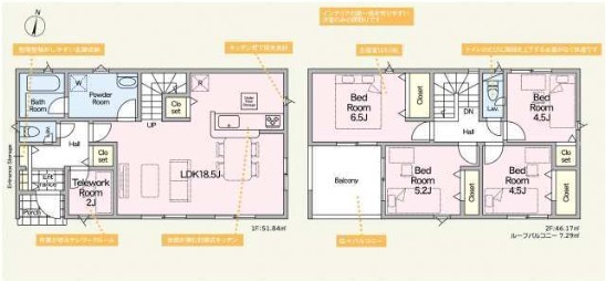 | 間取 | 4LDK+テレワークルーム2帖 (LDK18.5帖、洋室6.5帖、洋室5.2帖、洋室4.5帖、洋室4.5帖) | ||