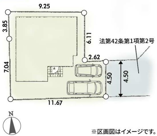 前面道路は約4.5mとゆとりがあり、比較的交通量も少ないため駐車もストレスなく可能です。