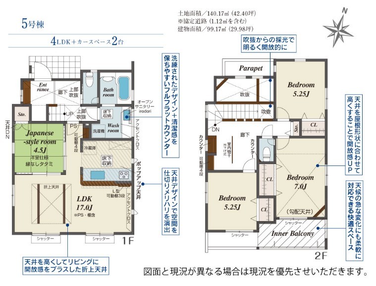 | 土地面積 | 136.02m² ~ 140.2m² (私道100.47m²~100.47m²別に有) | ||