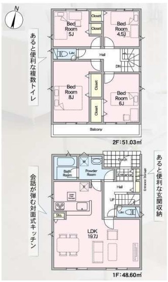 | 設備 | 公営水道、本下水、個別LPG プロパンガス,電気,上水道,下水道,システムキッチン,カウンターキッチン,浄水器,給湯,トイレ2箇所,温水洗浄便座,シャンプードレッサー,浴室乾燥機,フローリング,複層ガラス,24時間換気システム,収納スペース,床下収納,ディンプルキー,モニター付きインターホン,火災警報器等設置済 建設住宅性能評価取得(予定含む) |